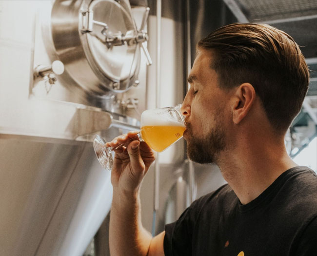 Het dynamische brouwteam van Brouwerij Hoop, met Pierre-Yves aan het roer en Esther als regelneef, stookt sinds 2016 het lekkerste bier met hun unieke Caspary installatie. Met een indrukwekkende capaciteit, duurzame energievoorziening en pittige pijplijn voor afvulling, schenken ze je graag een energieneutraal biertje in!